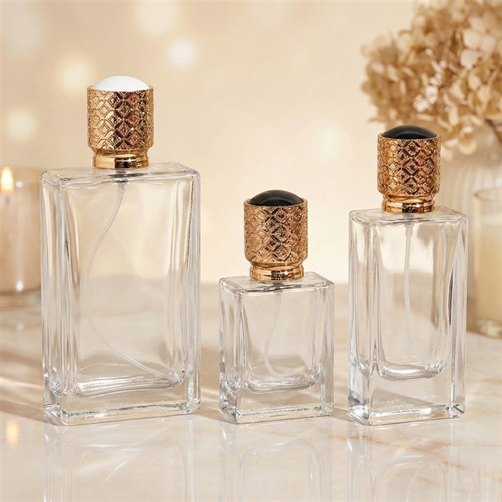 La forme est couronnée par un fermoir en métal distinctif fini en or chaud de qualité joaillerie-avec une gaine en treillis de diamants texturés-et un dessus en forme de dôme lisse en noir ou blanc. Le contraste entre la texture semblable au cuir-et la brillance élevée donne à l'ensemble une ambiance moderne et sur mesure-un luxe sans bruit. Les cols FEA standard acceptent les pompes à brouillard fin- (0,10 à 0,12 ml) et le col caché maintient le profil propre. L'histoire de votre marque peut être étendue grâce à la décoration : dégradés pulvérisés à froid,-laques douces-au toucher, givrage à l'acide-, impression UV ou sérigraphie, dorure à chaud, métallisation partielle, voire micro-emblèmes gravés. Du minimalisme monogrammé au blocage des couleurs audacieux, le flacon reste calme et précis tandis que la finale occupe le devant de la scène.